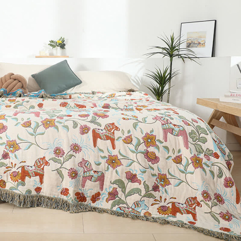 Diese Baumwolldecke entfaltet ihre Wirkung besonders im Schlafzimmer als dekorative Tagesdecke, im Wohnzimmer als stilvolles Sofacover oder als gemütliches Accessoire für Bett und Lounge. Sie eignet sich perfekt für alle, die florales Design lieben und gleichzeitig Wert auf Komfort und Funktionalität legen.