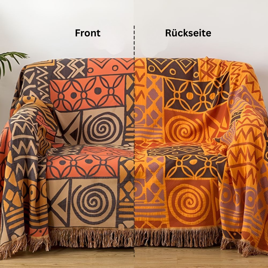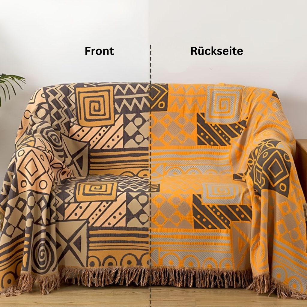 Die PatchworkFlair Baumwolldecke vereint ein kunstvolles Tribal-Patchwork-Design mit praktischer wendbarer Struktur und hochwertiger Baumwollqualität. Sie bringt kulturell inspirierten Stil und behagliche Wärme in Ihr Zuhause, während sie zuverlässig für Gemütlichkeit sorgt. Mit ihrer weichen Textur und den dekorativen Details verwandelt PatchworkFlair Schlafzimmer und Wohnbereich im Handumdrehen in eine Wohlfühl-Oase voller Charakter.