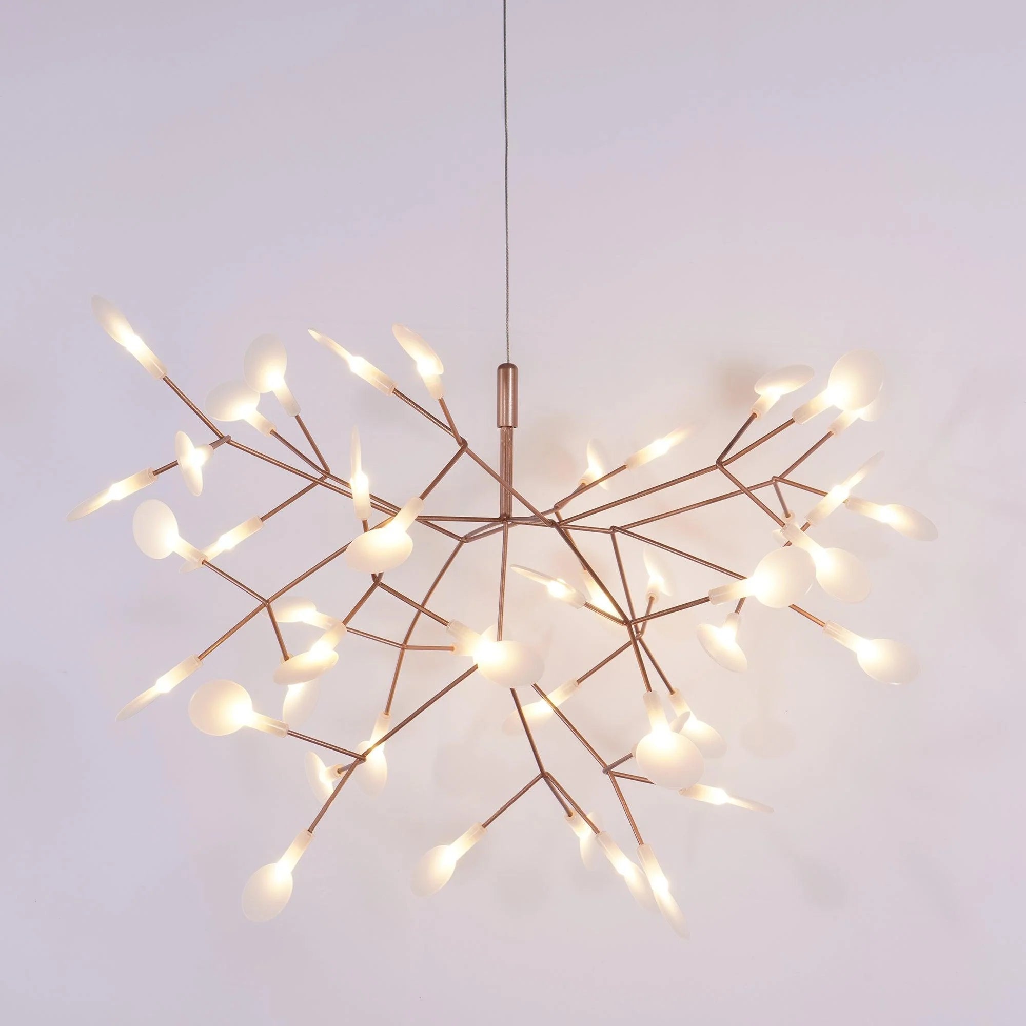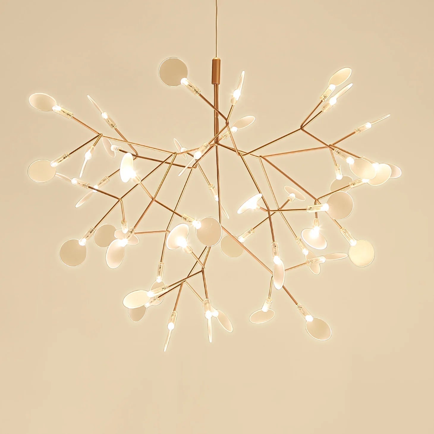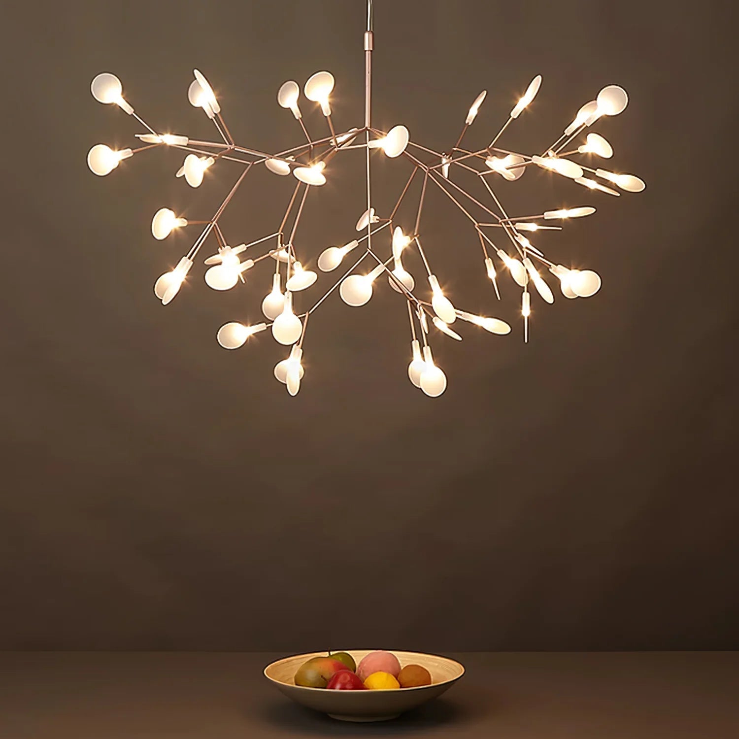 Der Elaris Sputnik-Kronleuchter vereint modernes Design mit organischer Eleganz. Seine verzweigten Lichtarme mit zarten Acrylkugeln erinnern an schwebende Glühwürmchen und schaffen ein faszinierendes Lichtspiel. Inspiriert vom Art-Déco-Stil, verbindet Elaris geometrische Präzision mit einer sanften, natürlichen Formgebung – ein echter Blickfang für Esszimmer, Wohnzimmer oder stilvolle Galerieräume.