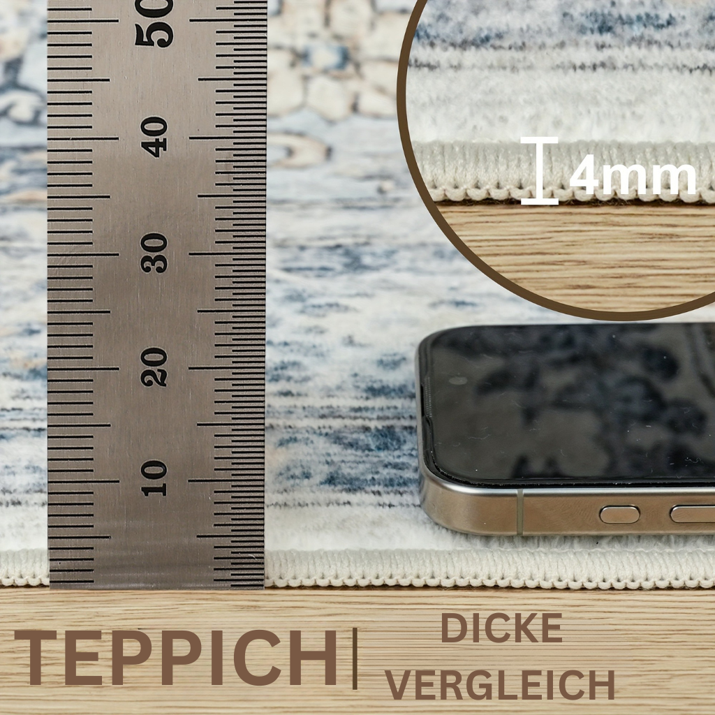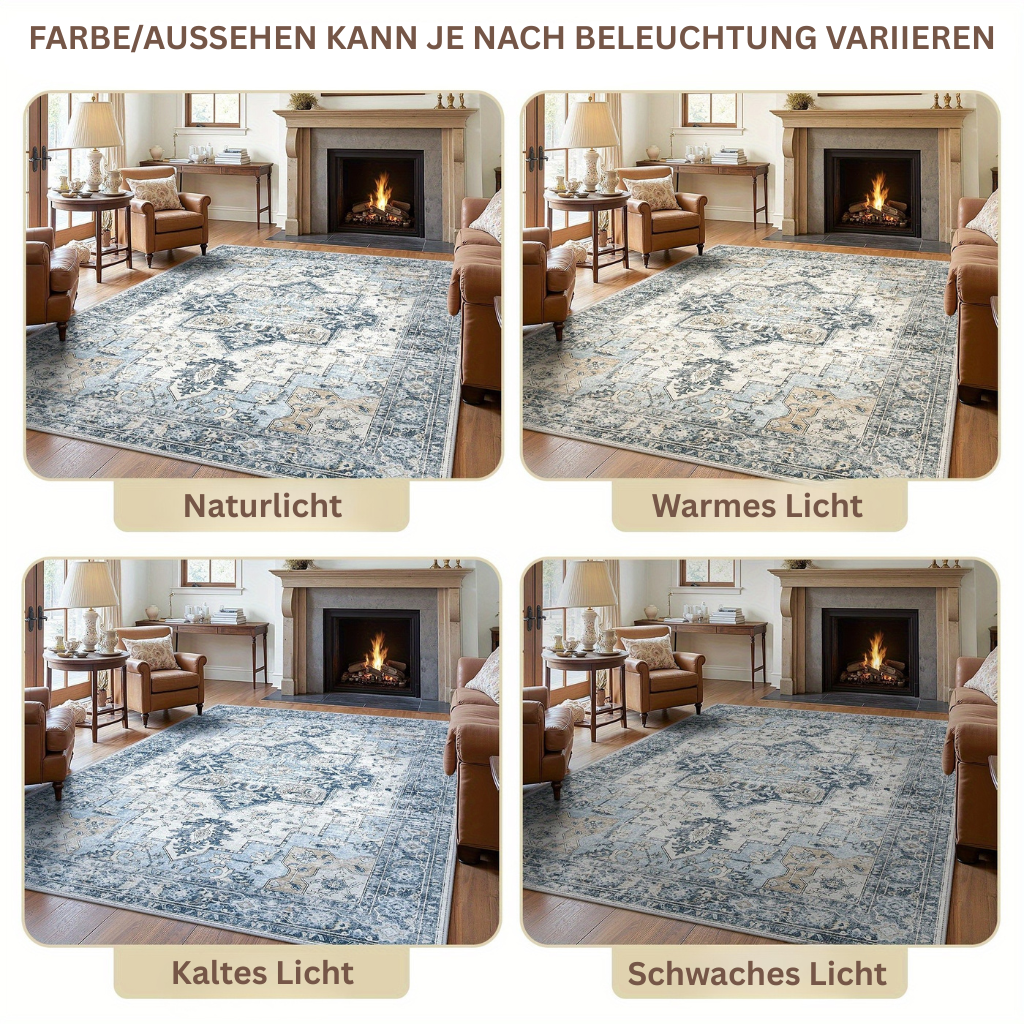 Dieser Teppich entfaltet seine Wirkung besonders im Esszimmer, wo er für eine gemütliche und stilvolle Atmosphäre sorgt. Auch im Büro oder Wohnzimmer setzt er dekorative Akzente und schafft ein behagliches Umfeld zum Arbeiten und Entspannen.