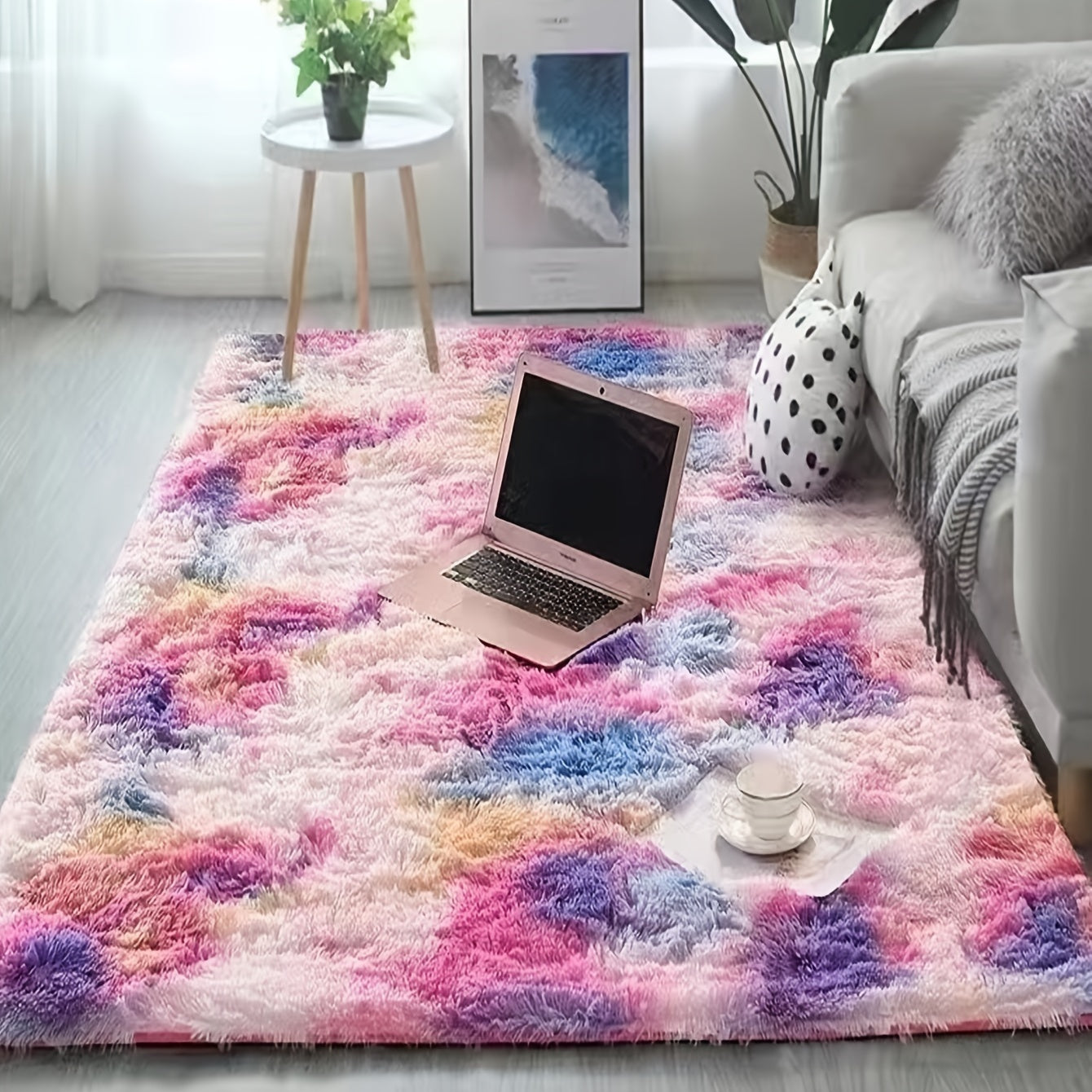 KuschelFarb: Weicher Hochflor Teppich im modernen Farbverlauf-Design aus Polyester – ideal für Wohnräume & Bettseite