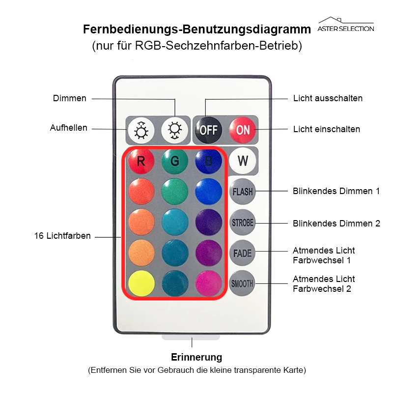- 16-Farb Lichtmodi: Wählen Sie aus einer Vielzahl von Farben und Effekten – ganz bequem per Fernbedienung.