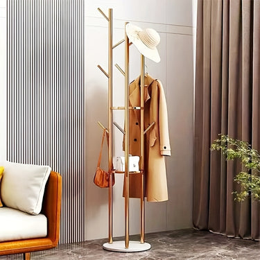 Der GoldenerStand Kleiderständer vereint modernes Metall-Design mit einer edlen Naturmarmor-Basis. Gefertigt aus hochwertigem Metall mit goldfarbenem Finish, ist er besonders stabil, langlebig und dekorativ. Mit seinen zahlreichen Haken bietet er vielseitigen Stauraum für Jacken, Mäntel, Taschen und Accessoires. Dank seiner freistehenden Konstruktion ist er flexibel platzierbar und eignet sich ideal für Flur, Eingangsbereich, Schlafzimmer oder Büro.