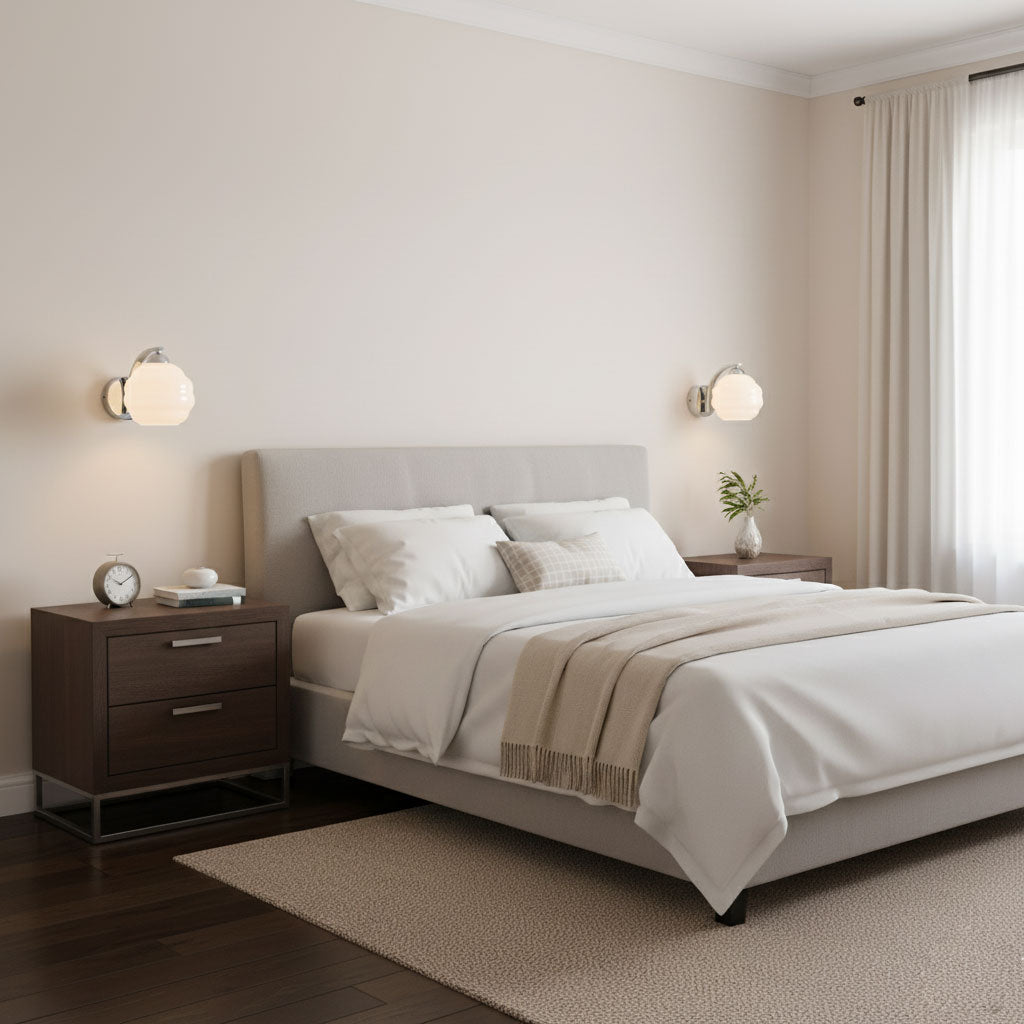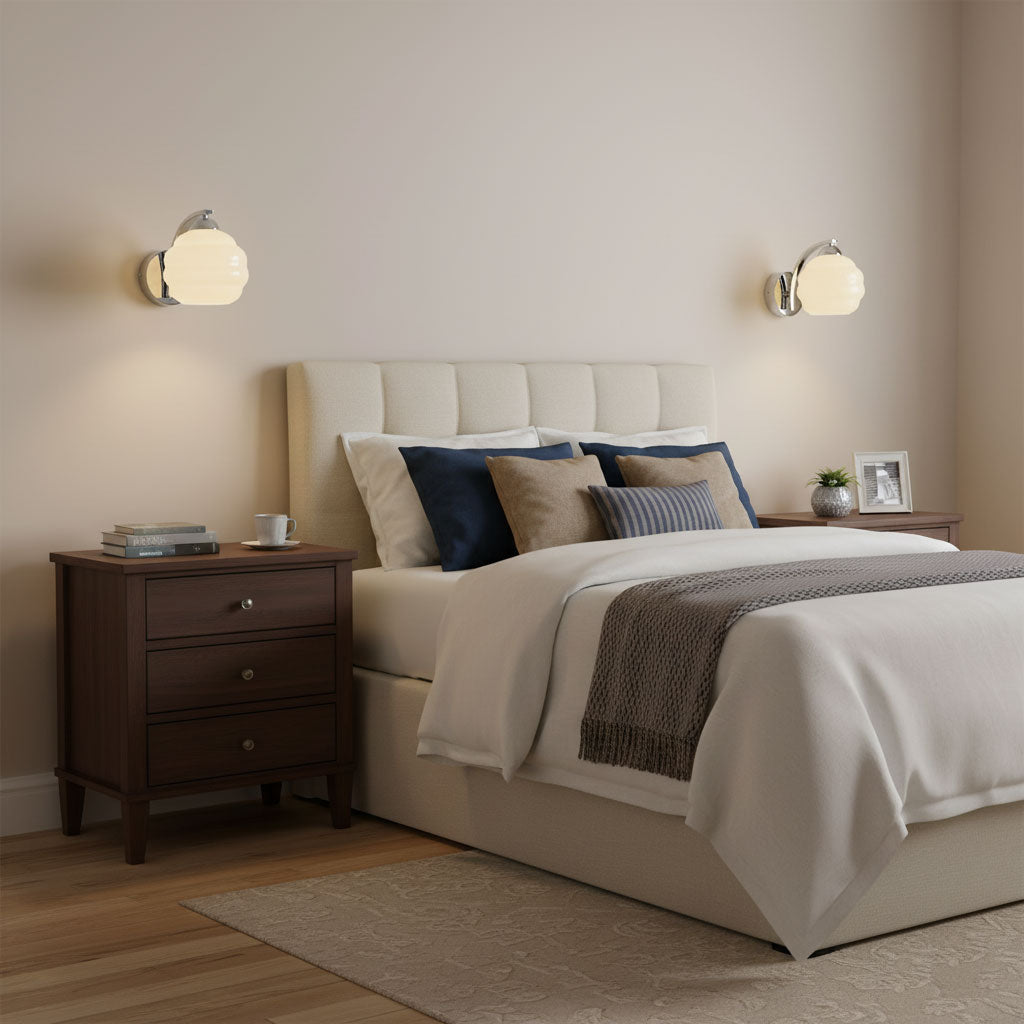 - Weißer Glasschirm – sanfte Lichtstreuung für behagliche Wohnatmosphäre